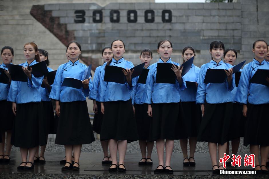 9月18日,侵華日軍南京大屠殺遇難同胞紀念館悼念廣場上,南京曉莊學院新聞傳播學院的34名大學生身著上世紀一二十年代的學生裝,在“勿忘九一八”南京青少年詩歌朗誦會暨“勿忘國恥·圓夢中華”朗誦比賽啟動儀式上朗誦《松花江上》、《南京!南京!》等詩歌。當日是“九一八事變”83周年,中國各地紛紛舉辦各種形式的紀念活動。中新社發(fā) 泱波 攝
