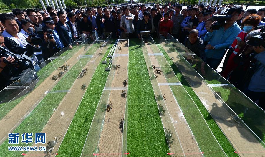 9月24日,觀眾圍觀河蟹競速賽。當(dāng)日,“旭海杯”河蟹趣味運動會在遼寧省盤錦市盤山縣政府廣場舉行。本次河蟹趣味運動會設(shè)置了河蟹障礙賽、競速賽、爬坡賽,另外,群眾還可以拿起吊桿、戴上手套進行釣螃蟹、抓螃蟹比賽。新華社記者 楊青 攝 圖片來源:新華網(wǎng)