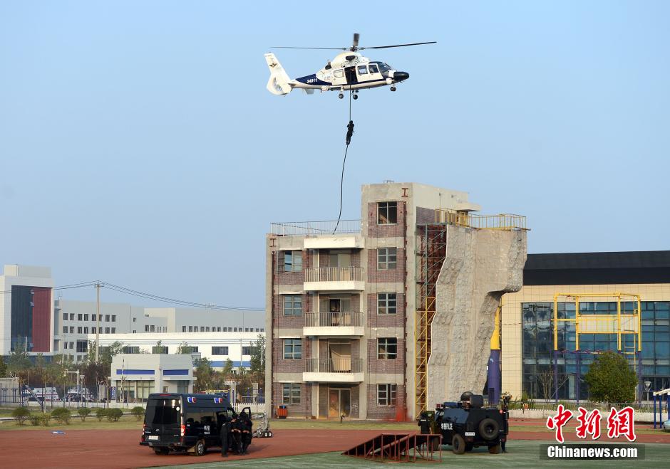 央廣網(wǎng)河南分網(wǎng)消息 據(jù)中國(guó)新聞網(wǎng)報(bào)道:10月26日,合肥市公安局特警支隊(duì)在進(jìn)行攀登索降演習(xí)。當(dāng)日安徽省“江淮2014—利劍行動(dòng)”反恐綜合演習(xí)在合肥特警支隊(duì)訓(xùn)練基地舉行,現(xiàn)場(chǎng)包括特警、武警、消防、衛(wèi)生、通信管理、電力公司、住建、交通運(yùn)輸?shù)?支處置力量、600余名應(yīng)急人員、77臺(tái)應(yīng)急車(chē)輛參加演習(xí)。此次演習(xí)分為應(yīng)急力量拉動(dòng)和現(xiàn)場(chǎng)實(shí)戰(zhàn)處置兩部分。 中新社發(fā) 張婭子 攝