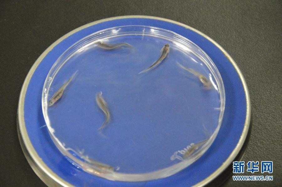 10月29日,中華鱘魚苗在培養(yǎng)皿中游弋。中國長江三峽集團公司中華鱘研究所近日透露,中華鱘全人工繁殖獲重大技術突破——曾參與過全人工繁殖的子一代中華鱘雌魚再次成熟并產卵出苗,這在中華鱘人工繁殖歷史上尚屬首次。對于中華鱘的物種保護具有重要意義。中華鱘是中國特有的古老珍稀魚類,也是世界現(xiàn)存魚類中最原始的種類之一,在地球上已繁衍生息1.4億年,被譽為“水中大熊貓”。