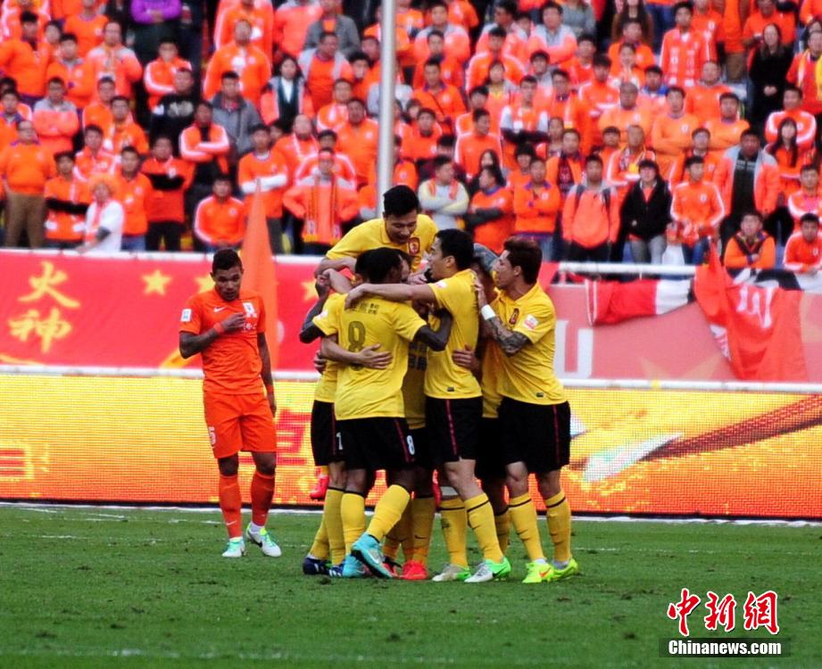 11月2日,中超最后一輪展開一場(chǎng)焦點(diǎn)戰(zhàn)役,魯能坐鎮(zhèn)主場(chǎng)迎戰(zhàn)衛(wèi)冕冠軍恒大。上半場(chǎng),劉彬彬第11分鐘單刀球破門。第43分鐘,埃爾克森禁區(qū)外遠(yuǎn)射扳平。下半場(chǎng)易邊再戰(zhàn),雙方再無破門,最終恒大客場(chǎng)1-1戰(zhàn)平魯能,實(shí)現(xiàn)中超四連冠。圖片來源:Osports全體育圖片社