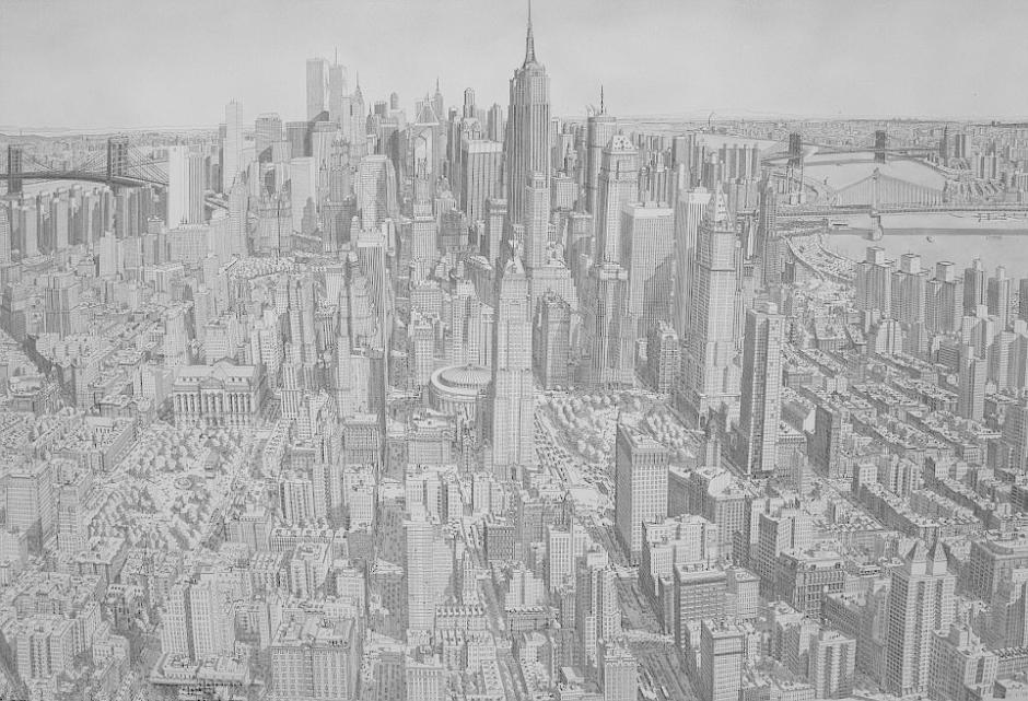 據(jù)英國《每日郵報》12月16日報道,來自荷蘭的插畫師史蒂芬,不僅畫技出眾,而且記憶力驚人。他擅長繪制極其細膩的城市風(fēng)景,細致到街角的垃圾箱,每一幅繪制通常長達幾周甚至半年。令人驚奇的是,他并不需要像其他的畫家一樣對著風(fēng)景作畫,只要他去一個城市游歷一番,就能清楚記下這個城市的面貌,簡直可以達到絲毫不差的地步。畫面上就是他描繪的紐約城。(網(wǎng)頁截圖)