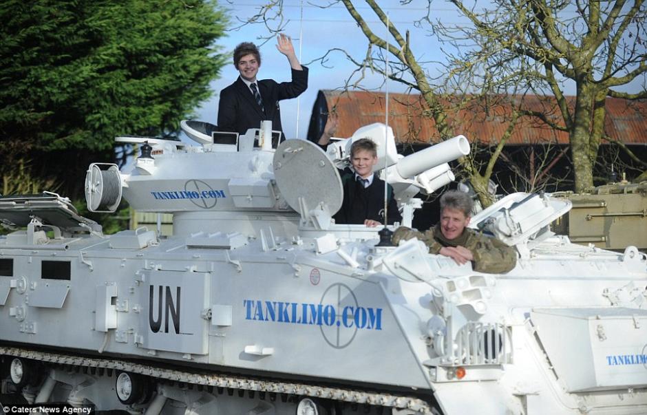 據(jù)《每日郵報》2014年12月17日報道,一名父親發(fā)明了一個讓自己的兩個兒子不管刮風(fēng)下雨,每天按時上學(xué)的好辦法—每天駕駛一輛重達17噸的坦克送他們上學(xué)。軍事迷Nick Mead共擁有總計價值兩百萬、130余輛可以合法上路的坦克,這意味著他的兩個兒子每天可以自己選擇一輛坦克,讓父親送他們上學(xué)。他們的座駕就算在惡劣的大雪天也絲毫不受影響。Nick表示,他兒子的同學(xué)們每次看到他們的坦克時都目瞪口呆,而且他也很享受其他父母臉上的那種吃驚的表情。(網(wǎng)頁截圖)