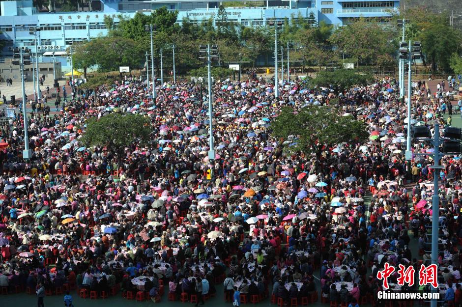 央廣網(wǎng)河南分網(wǎng)消息 據(jù)中國新聞網(wǎng)報道:12月21日在葵涌運動場舉行“共筑香港夢-萬人冬至盆菜宴”,為區(qū)內(nèi)低收入家庭、少數(shù)族裔人士安排“冬至團年飯”。中新社發(fā) 譚達明 攝