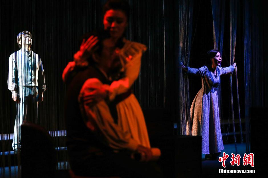 1月29日,是俄羅斯著名作家契訶夫155歲生日,為紀(jì)念他的誕辰,由翻譯專家童道明擔(dān)任編劇,楊申執(zhí)導(dǎo)的戲劇《愛戀·契訶夫》在中國國家話劇院小劇場(chǎng)正式上演。該劇以《海鷗》在1869年圣彼得堡首演失敗為背景,講述了郁郁寡歡的契訶夫與初戀情人麗卡·米齊諾娃在創(chuàng)作事業(yè)與婚姻情感之間的故事。劇中,演員展現(xiàn)了卸下神性光環(huán)的契訶夫作為一個(gè)普通人,如何在自己的理想與現(xiàn)實(shí)之間進(jìn)行取舍的一面,讓觀眾見識(shí)到一個(gè)更加多面、人性化的契訶夫。中新社發(fā) 富田 攝