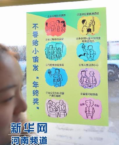 “不要給小偷發(fā)‘年終獎’”、“兜多也防賊”、“見義勇為光榮,膽小怕事可恥”......這些都是小貼士的內(nèi)容,車長劉師傅介紹說,快過年了,許多到鄭州務(wù)工的人員都是帶著一年的辛苦錢準備回家過年,另外最近放假回家的大學(xué)生也比較多,丟錢丟物的情況時有發(fā)生。每當這個時候,不僅是丟東西的人難過,他看著心里也不舒服。