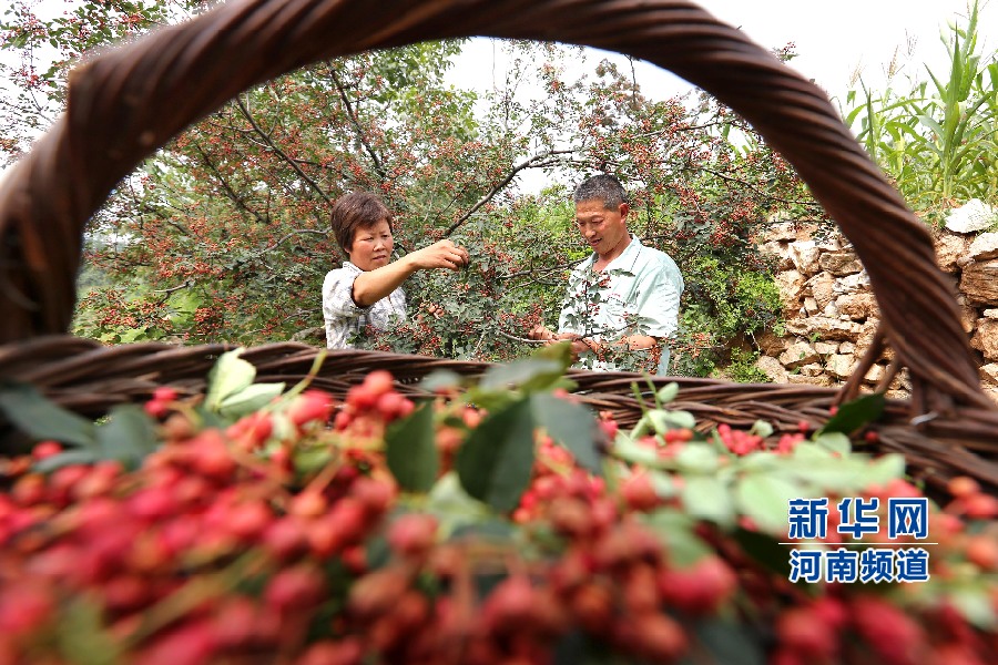 央廣網(wǎng)河南分網(wǎng)消息 2015年8月11日,河南省林州市東崗鎮(zhèn)中盧寨村西南山坡地火龍崗,花椒種植大戶付愛香與丈夫正在采摘優(yōu)質“大紅袍”,豐收的喜悅寫在臉上。