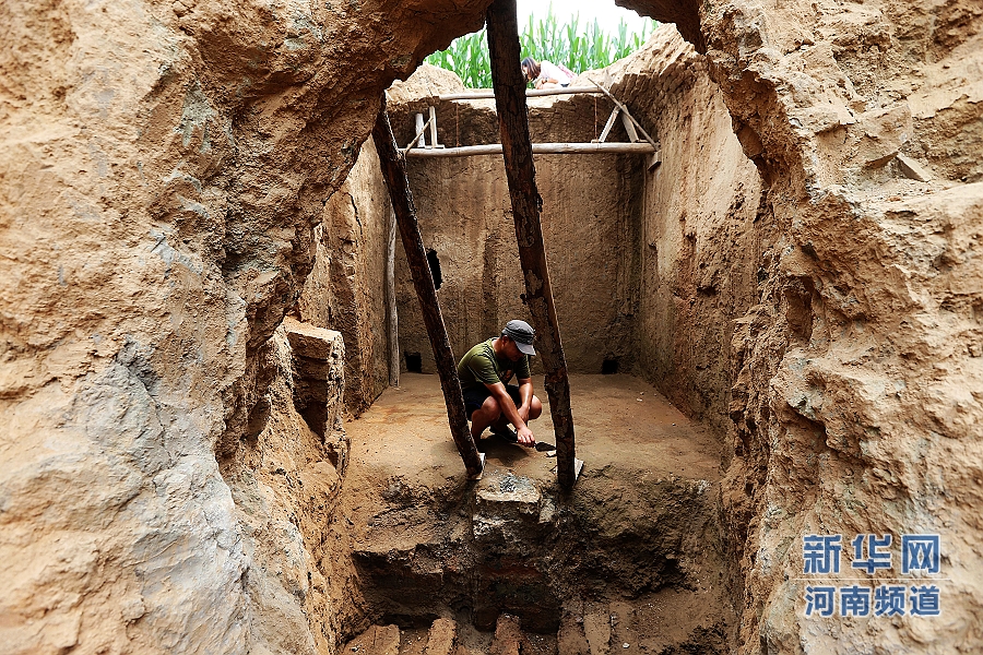 8月11日,一名工作人員在河南省洛陽市孟津縣新莊村一東漢大型燒窯遺址進行考古工作。