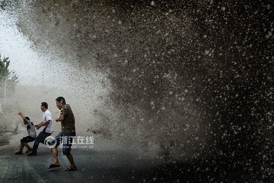 8月17日下午,農(nóng)歷七月初的大潮汛洶涌來襲。錢塘江杭州下沙段,渾濁的浪潮席卷上岸,瞬間拍翻大批看潮客。錢塘江大潮主要是由月亮和太陽對地球表面海水的吸引力造成。農(nóng)歷每月的初三和十八前后,潮勢尤盛。(浙江在線記者 倪雁強 實習生 張孫超)