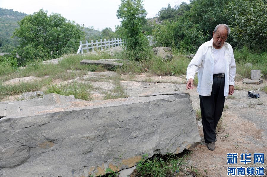 8月24日,在河南省輝縣市張村鄉(xiāng)平嶺村,郭池善查看修橋時剩余的石料。