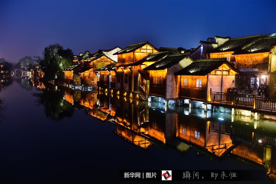 12月15日,烏鎮(zhèn)西柵呈現(xiàn)美麗的夜色,靜待大會(huì)開幕。