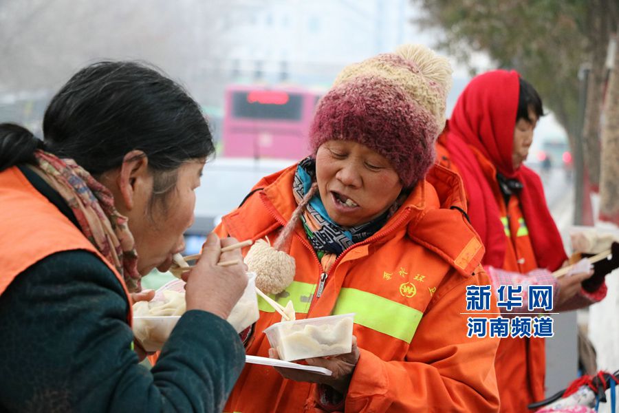 12月22日,在河南省鄭州市,“餃子哥”王孝利和志愿者們將一碗碗熱騰騰的餃子送到了環(huán)衛(wèi)工人手中。當(dāng)日是農(nóng)歷二十四節(jié)氣中的“冬至”,“餃子哥”和志愿者們準(zhǔn)備了600份餃子,免費送給環(huán)衛(wèi)工人、執(zhí)勤交警和外來務(wù)工人員,讓他們在寒冬中感受溫暖。這一做法,“餃子哥”已連續(xù)堅持了4年。 馮磊 攝