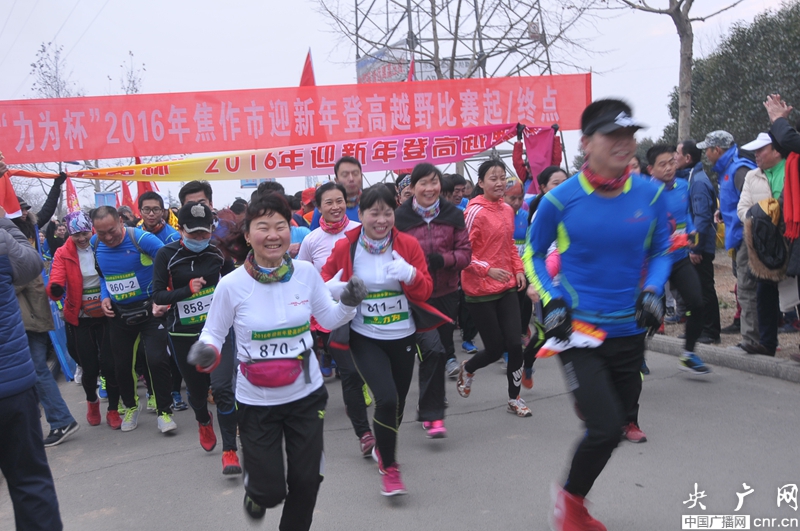 央廣網(wǎng)河南分網(wǎng)1月4日消息 2016年1月1日,焦作市2016年迎新年登高越野賽在該市縫山針公園舉行。全市黎明腳步、太極拳社團、快樂舞步社團、健步走社團以及愛好登山運動的市民2200余人參加了這次比賽。