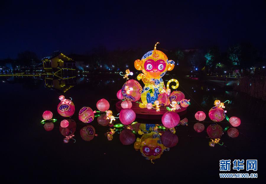 2月5日,猴年彩燈亮相烏鎮(zhèn)西柵景區(qū)河道上。新華社記者 徐昱 攝
