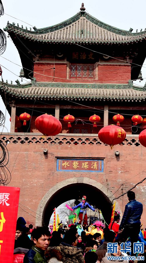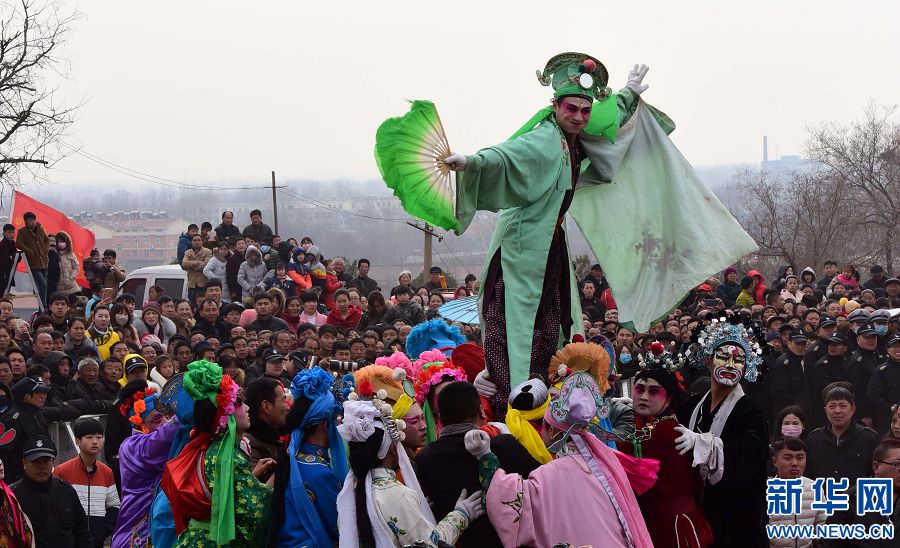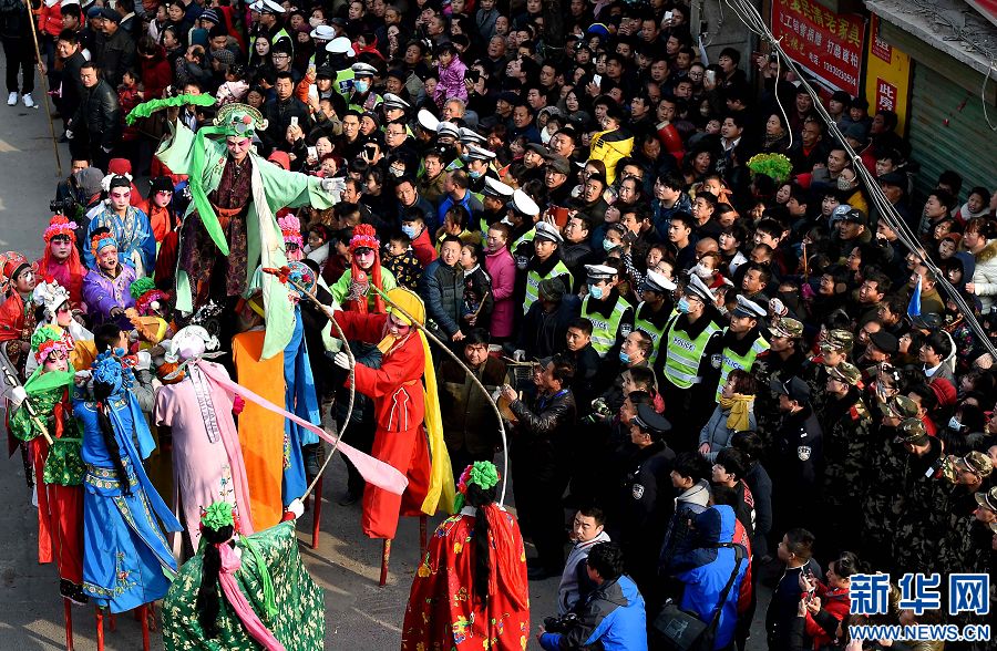 當(dāng)日,河南省浚縣正月古廟會舉行民間社火大賽,精彩紛呈的抬閣、舞獅、踩高蹺等表演吸引了周邊市縣及來自晉、冀、魯、皖等省的眾多游客。河南浚縣正月古廟會已有1600多年歷史,從每年農(nóng)歷正月初一持續(xù)到二月初二,被譽(yù)為鄉(xiāng)村里的“狂歡節(jié)”。