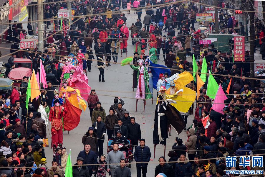 當(dāng)日,河南省?h正月古廟會舉行民間社火大賽,精彩紛呈的抬閣、舞獅、踩高蹺等表演吸引了周邊市縣及來自晉、冀、魯、皖等省的眾多游客。河南?h正月古廟會已有1600多年歷史,從每年農(nóng)歷正月初一持續(xù)到二月初二,被譽(yù)為鄉(xiāng)村里的“狂歡節(jié)”。