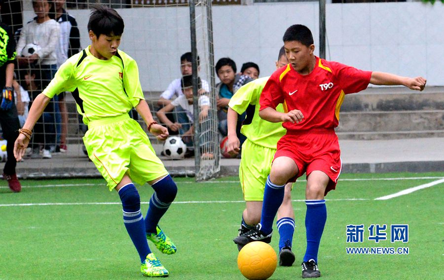 5月31日,“同一世界足球”項(xiàng)目河南省啟動(dòng)儀式在洛寧縣城郊鄉(xiāng)余莊小學(xué)舉行,貧困縣的兒童們領(lǐng)到了喜愛(ài)的特制足球。據(jù)了解,本次活動(dòng)由中國(guó)宋慶齡基金會(huì)、河南省體育局聯(lián)合主辦,河南省體育發(fā)展基金會(huì)、市體育局、洛寧縣人民政府聯(lián)合承辦。在捐贈(zèng)儀式上,洛陽(yáng)市洛寧縣、宜陽(yáng)縣、汝陽(yáng)縣、嵩縣、欒川縣等5個(gè)縣共受贈(zèng)1600個(gè)特制足球。期間,余莊小學(xué)還進(jìn)行了校園足球操和五人制足球比賽等展示活動(dòng)。新華網(wǎng)發(fā)(高山岳 攝)