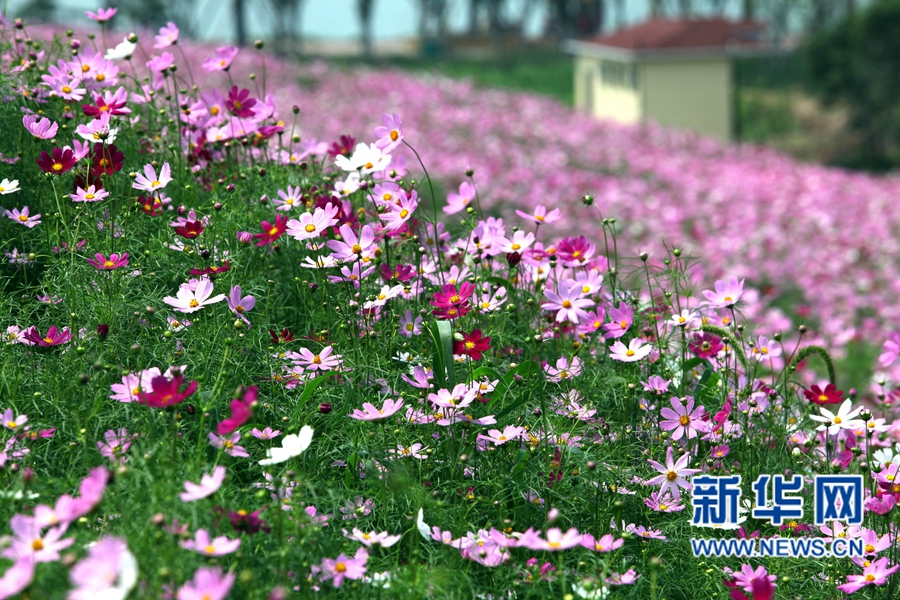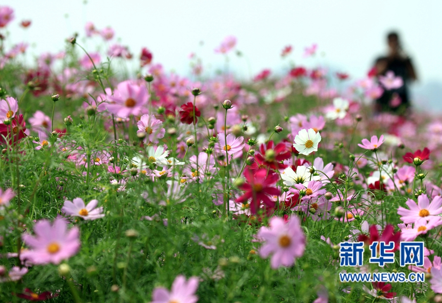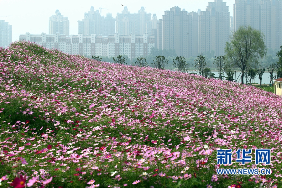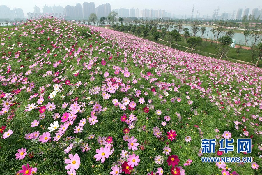 近日,河南許昌鹿鳴湖畔的500畝格桑花競相綻放,把環(huán)湖四周裝扮得像圖畫一樣美麗,吸引了眾多市民前來賞花觀光。