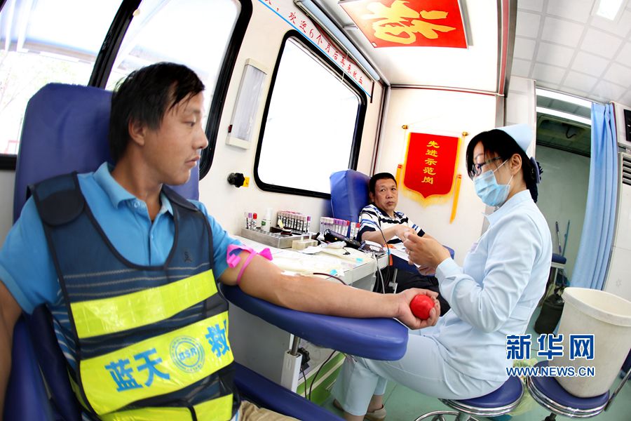 央廣網(wǎng)河南分網(wǎng)消息 2016年6月14日,河南省安陽(yáng)市燈塔路與紅旗路交匯處市政廣場(chǎng),藍(lán)天救援隊(duì)的隊(duì)友正在愛(ài)心獻(xiàn)血屋里愉快地?zé)o償獻(xiàn)血。