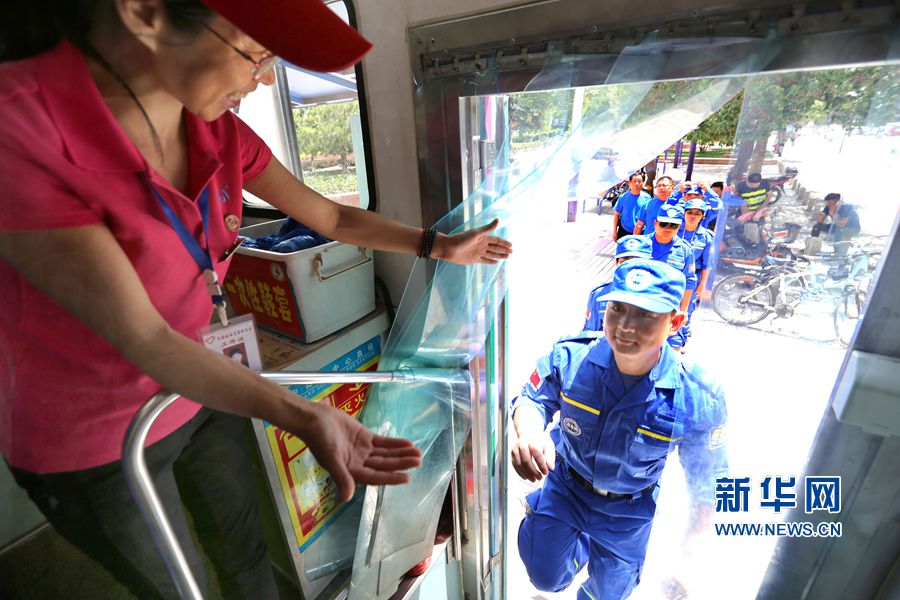 2016年6月14日,河南安陽(yáng)老市政廣場(chǎng)愛(ài)心獻(xiàn)血屋,來(lái)自安陽(yáng)、林州藍(lán)天救援隊(duì)的隊(duì)友排長(zhǎng)隊(duì)參與無(wú)償獻(xiàn)血。
