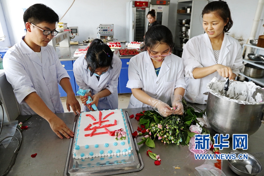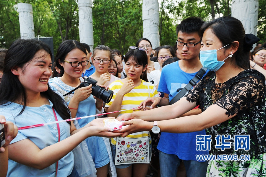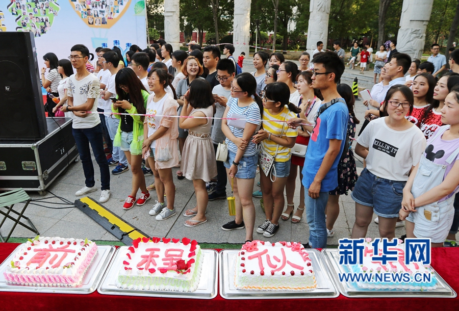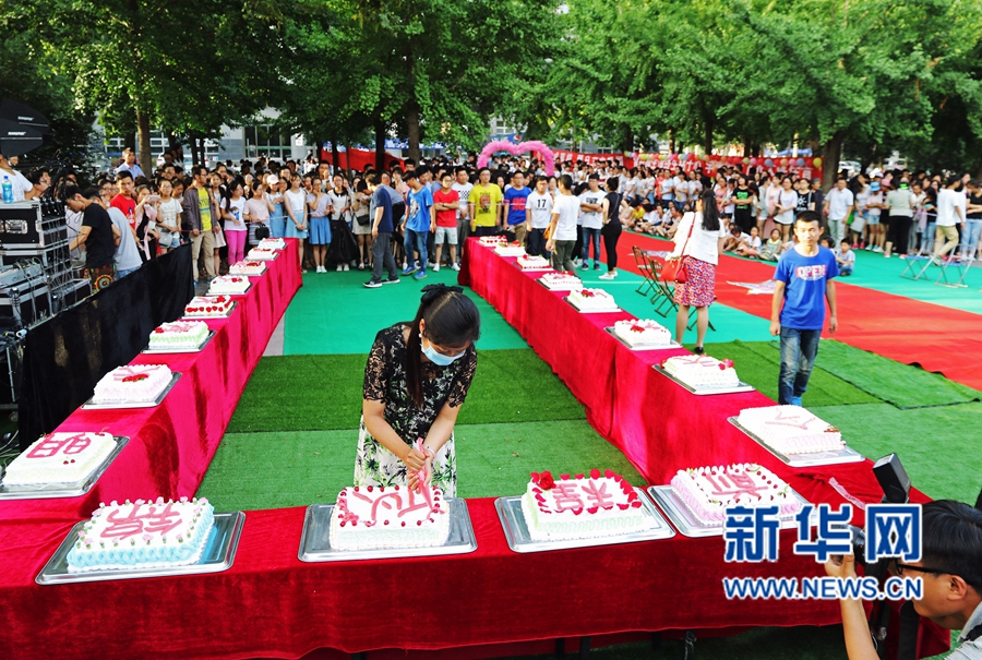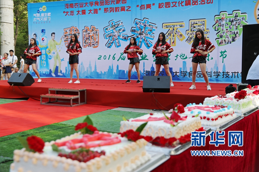 6月14日,正值畢業(yè)季,河南農(nóng)業(yè)大學(xué)食品學(xué)院的六名研究生制作了一塊巨型祝福蛋糕,連起來長約十米,該學(xué)院的老師還在蛋糕上寫下了“前程似錦”、“今天我以農(nóng)大為榮,明天農(nóng)大以我為榮”等字樣。