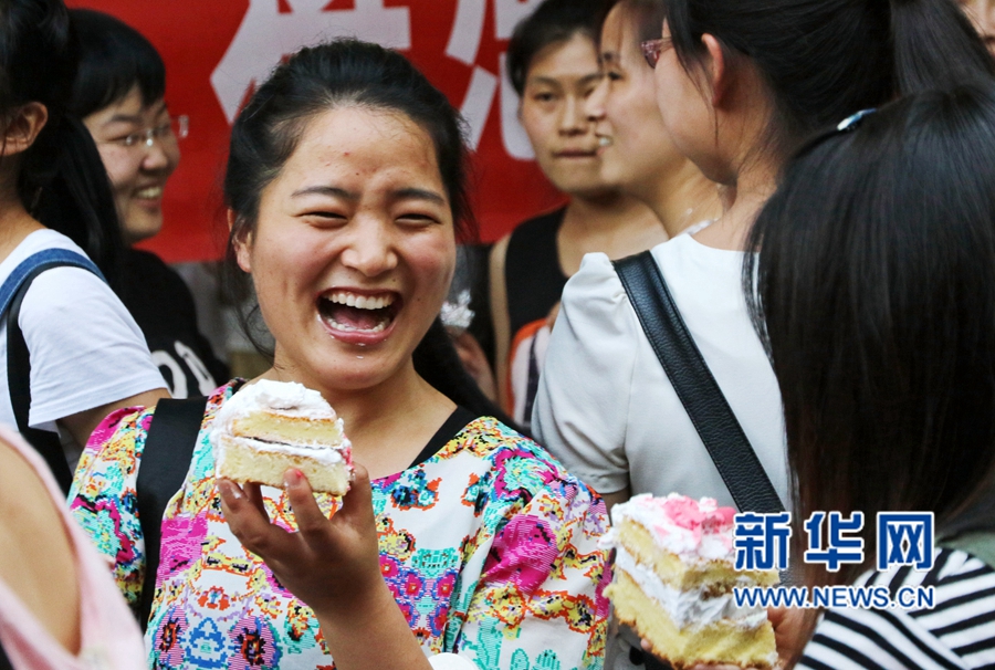 6月14日,蛋糕上寫下了“前程似錦”的字樣。