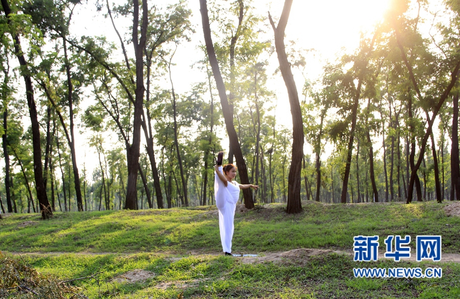 6月19日,瑜伽愛(ài)好者在內(nèi)黃縣萬(wàn)畝槐林內(nèi)練習(xí)瑜伽。