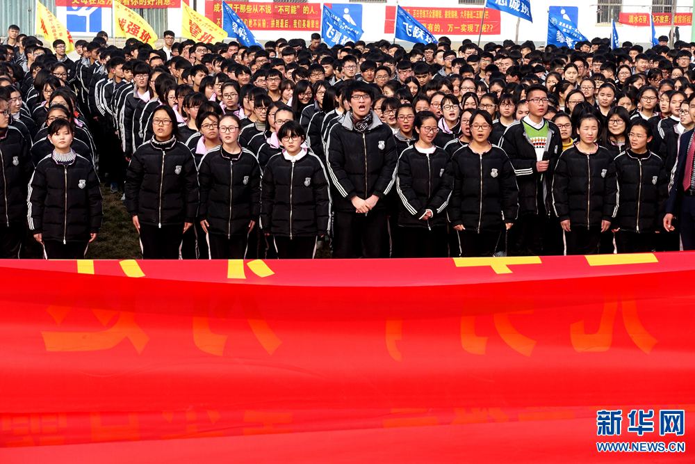 2月19日,河南省夏邑縣第一高級(jí)中學(xué)高三年級(jí)師生在集體宣讀誓言。當(dāng)日,河南省夏邑縣第一高級(jí)中學(xué)舉行“決勝高考百日沖刺”誓師會(huì),引導(dǎo)和鼓勵(lì)高三年級(jí)師生努力拼搏,科學(xué)備戰(zhàn),理性高考。新華網(wǎng)發(fā)(苗育才 攝) -
