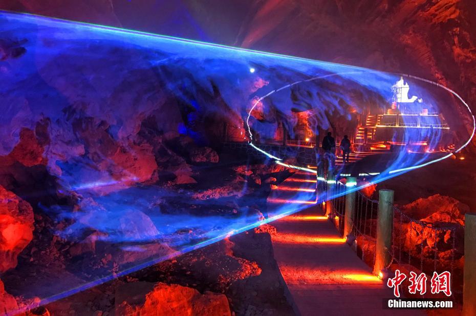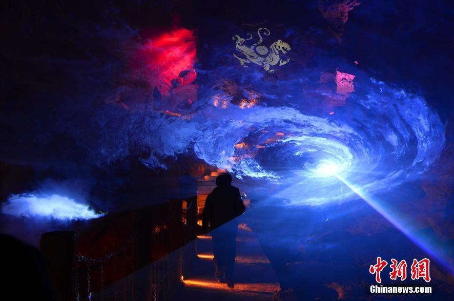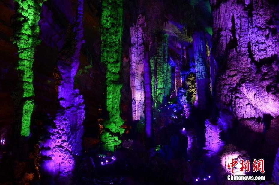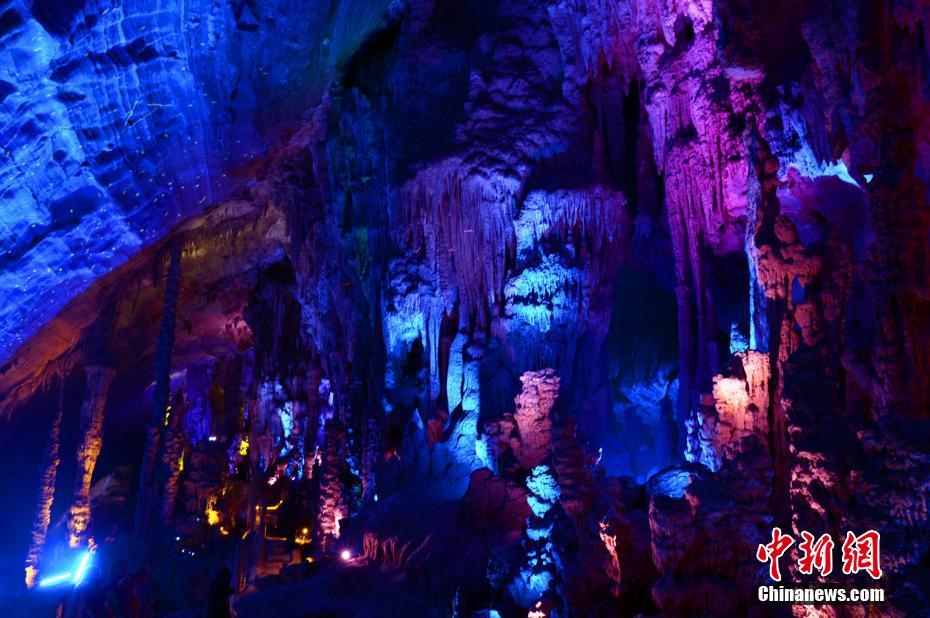 3月6日,來(lái)自全國(guó)的百余名游客慕名來(lái)到湖北五峰土家族自治縣長(zhǎng)生洞,觀看洞內(nèi)的“崖壁星空”景觀首秀。長(zhǎng)生洞位于北緯30°地理圈,其形成距今約1.4億年,洞口巧生東西峭壁間,縱深300米,橫跨1500米,上下三層,高約50至100米。洞內(nèi)分布著“穿越時(shí)空”“轉(zhuǎn)世蓮花”“崖壁星空”等20多處景點(diǎn),千姿百態(tài)的鐘乳石與七彩幻燈交相輝映,讓人在欣賞后嘆為觀止。五峰縣位于湖北省西南部,以喀斯特地貌為主,平均海拔1100米,是一個(gè)少數(shù)民族山區(qū)縣。圖為千姿百態(tài)的石鐘乳與七彩燈交相輝映。鐘欣 攝 -
