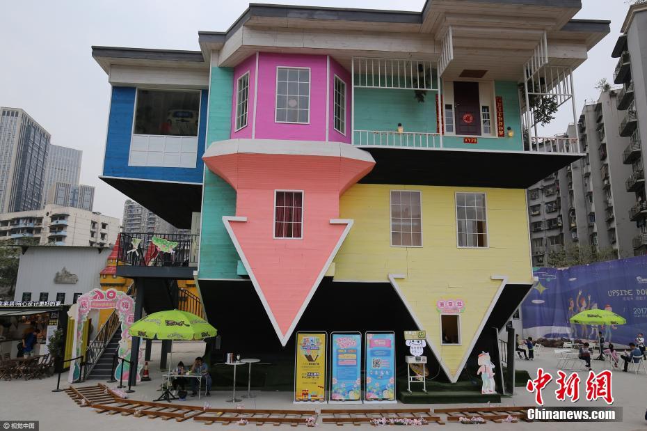 2017年4月8日,風(fēng)靡全球的創(chuàng)意趣味顛倒屋現(xiàn)身重慶大坪龍湖時(shí)代天街。它是目前中國(guó)內(nèi)地唯一,且與臺(tái)北、高雄兩個(gè)城市的顛倒屋“同款”的奇特建筑,歷時(shí)數(shù)月傾心打造。顛倒屋乍看外表是一棟充滿小清新氣息、刷著冰淇淋色墻漆的倒立小洋房,可當(dāng)你走進(jìn)這個(gè)世界才會(huì)猛然發(fā)現(xiàn):原來(lái)這里能讓所有進(jìn)入這個(gè)世界的事物都徹底顛倒!包括餐桌上熱氣騰騰的火鍋、塞滿裙子的衣柜、車庫(kù)里的萌系汽車……都給人一種強(qiáng)烈的視覺(jué)沖擊感。參觀過(guò)程中,游客一邊體驗(yàn)顛倒屋內(nèi)精致的陳設(shè),同時(shí)在努力克服顛覆習(xí)慣的視覺(jué)感受,游覽一圈下來(lái),“時(shí)空倒錯(cuò)”、“神魂顛倒”、“飛檐走壁”等都成為游客口中不約而同的感受。圖片來(lái)源:視覺(jué)中國(guó)