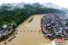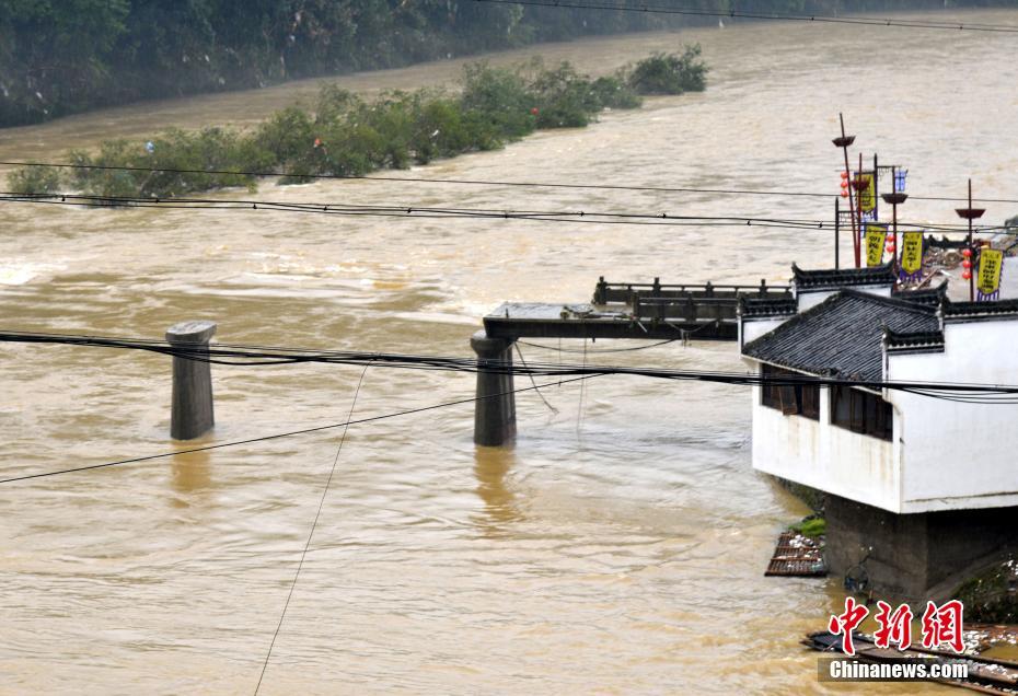 6月25日,中國減災(zāi)委、民政部對(duì)江西省啟動(dòng)國家救災(zāi)四級(jí)應(yīng)急響應(yīng)。6月21日至今,江西受強(qiáng)降雨襲擊,多地受淹嚴(yán)重。據(jù)江西省民政廳報(bào)告,截至6月25日8時(shí)統(tǒng)計(jì),暴雨洪澇災(zāi)害造成江西南昌、景德鎮(zhèn)、萍鄉(xiāng)、九江等8市34個(gè)縣(市、區(qū))116.3萬人受災(zāi),緊急轉(zhuǎn)移安置20.4萬人,直接經(jīng)濟(jì)損失14.7億元人民幣。6月25日,江西省婺源縣江灣鎮(zhèn)汪口村一橋梁被沖毀。 程新德 攝 -