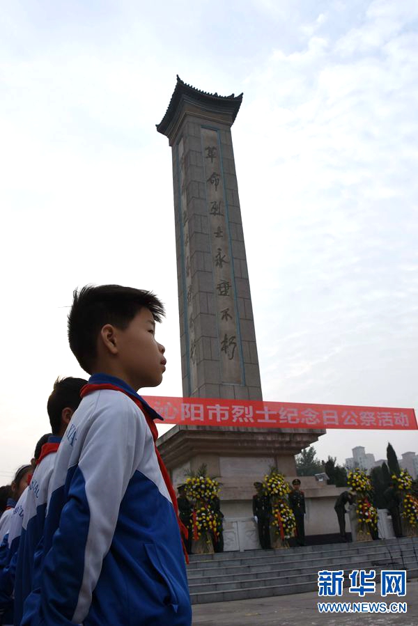 9月30日,在沁陽市烈士陵園,少先隊(duì)員正在瞻仰狼牙山壯士宋學(xué)義陵墓。當(dāng)日,是我國烈士紀(jì)念日。上午8點(diǎn)30分,沁陽市在烈士紀(jì)念碑前舉行大型烈士公祭活動(dòng)。來自該市的黨政機(jī)關(guān)干部、部隊(duì)官兵、烈士遺屬代表、少先隊(duì)員、青年學(xué)生、社會(huì)各界代表等1500余人參加公祭活動(dòng)。新華網(wǎng)發(fā)(楊志強(qiáng) 攝) -