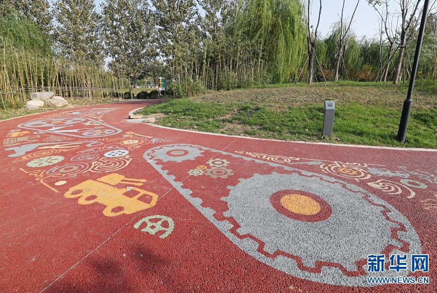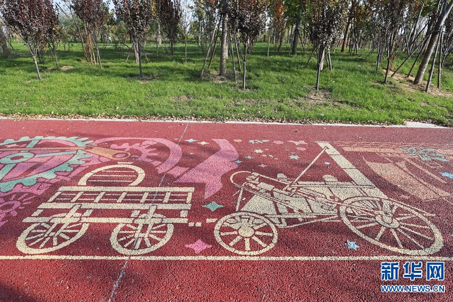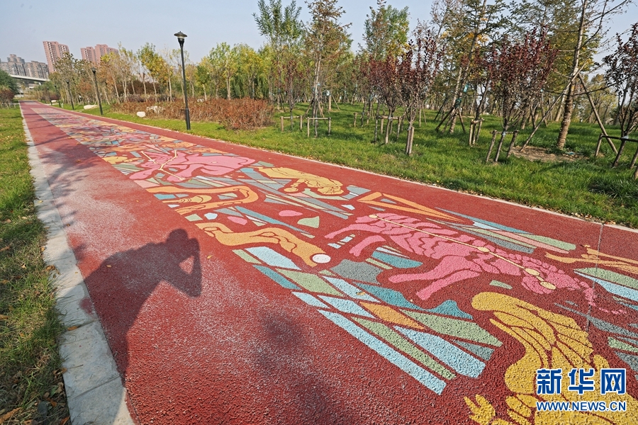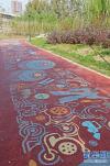 11月7日,鄭州市南三環(huán)與中州大道附近,西吳河公園內(nèi)新建的“科普健身步道”,1036米長(zhǎng)的紅褐色步道,地面上畫(huà)有色彩斑斕的藝術(shù)科普?qǐng)D案,吸引不少市民前來(lái)游園。 -