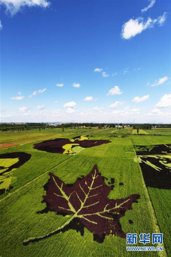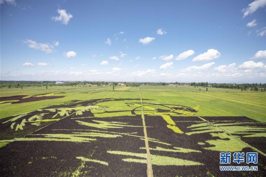 這是8月18日在新疆察布查爾錫伯自治縣納達齊牛錄鄉(xiāng)稻田畫基地拍攝的稻田畫。近日,新疆察布查爾錫伯自治縣納達齊牛錄鄉(xiāng)稻田畫基地進入最佳觀賞期,迎來大批游客觀看。新華社記者 沙達提 攝 -