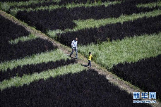 這是8月18日在新疆察布查爾錫伯自治縣納達齊牛錄鄉(xiāng)稻田畫基地拍攝的稻田畫。近日,新疆察布查爾錫伯自治縣納達齊牛錄鄉(xiāng)稻田畫基地進入最佳觀賞期,迎來大批游客觀看。新華社記者 沙達提 攝