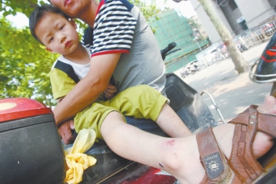 一名小朋友的腳踝部位出現擦傷