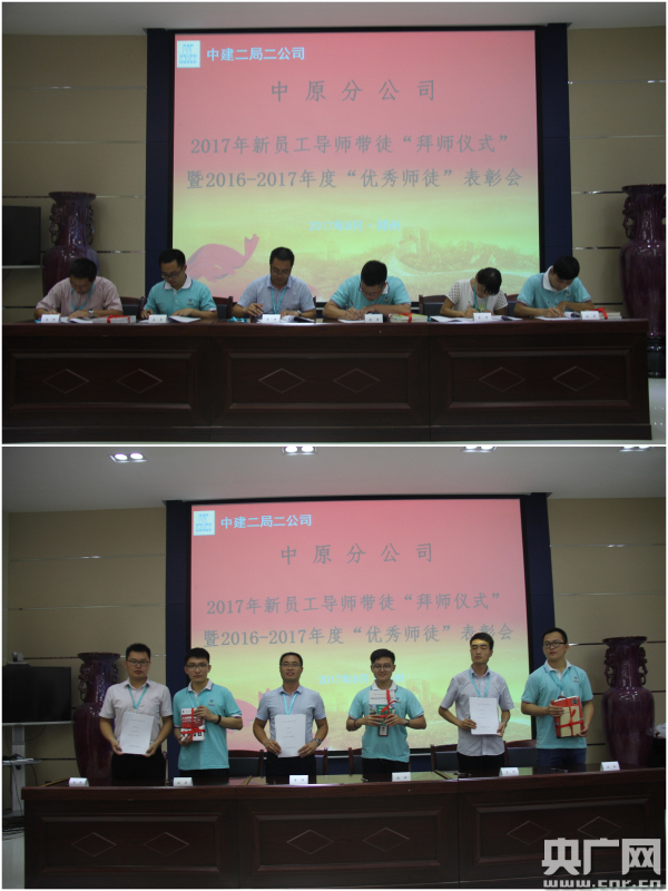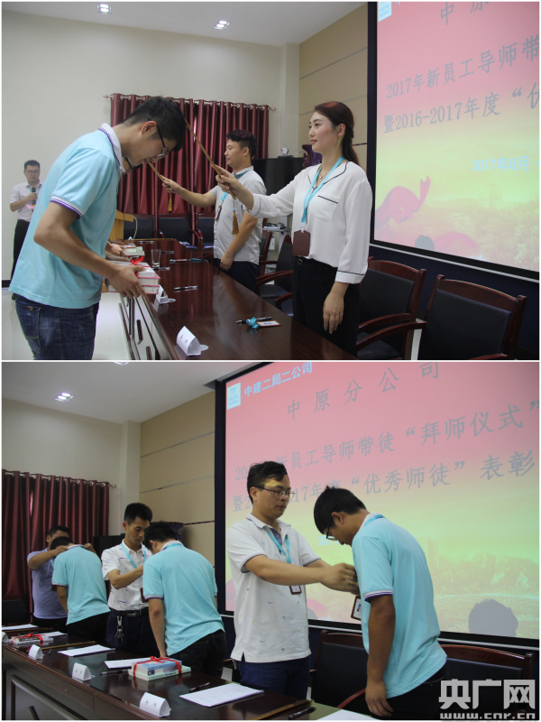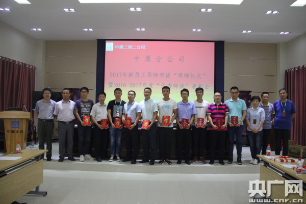 央廣網(wǎng)河南分網(wǎng)8月16日消息 導師帶徒活動作為中建二局二公司中原分公司的品牌活動,尤其受到了領(lǐng)導的高度重視。為了保障活動的有效落地,發(fā)揮出“傳、幫、帶”的作用,前期由人力資源部及團委認真策劃、精心籌備,共對13個導師帶徒活動點進行全覆蓋參與。中原分公司總部作為導師帶徒活動的最后一站,8月11日,2017屆新員工導師帶徒拜師儀式暨2016年優(yōu)秀師徒表彰會在分公司蒼狼學院隆重召開。