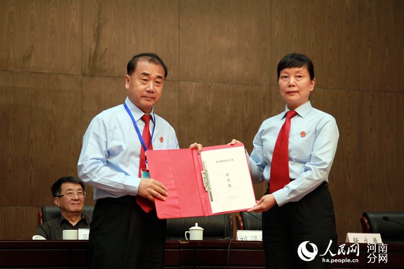 河南省高級(jí)人民法院院長(zhǎng)張立勇頒發(fā)“軍令狀”