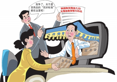 不過,此類問題的解決,很快將有“法”可依。3月15日,國家工商總局出臺的《網(wǎng)絡(luò)購買商品七日無理由退貨暫行辦法》(以下簡稱《辦法》)將正式實施!靶乱(guī)對‘七日內(nèi)無理由退貨’制度進行了細化,進一步明確了無理由退貨的適用范圍,對退貨商品‘完好’的標準進行了界定,對電商和消費者而言更具可操作性!笔」ど叹窒嚓P(guān)負責人說。