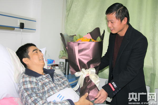 他一打聽才知道,熊師傅因?yàn)槲赴┩砥谧≡毫,他吃驚又難過。思來想去,他決定去看望熊師傅,送上一束鮮花,親口對他說聲“謝謝”。他說,孩子好了,醫(yī)生護(hù)士非常重要,但轉(zhuǎn)運(yùn)的師傅也功不可沒。15日,在武漢市一醫(yī)院,他手捧一束向日葵送給熊師傅:“向日葵象征明朗和快樂,希望您早點(diǎn)好起來,繼續(xù)守護(hù)孩子們!