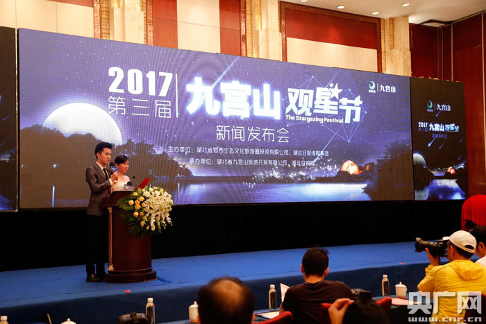 央廣網(wǎng)武漢7月15日消息 7月14日,湖北通山縣九宮山風(fēng)景區(qū)在漢召開2017年觀星節(jié)新聞發(fā)布會,位于該景區(qū)內(nèi)星光公園(一期)將于今夏正式開園,游客可前往露營觀星。