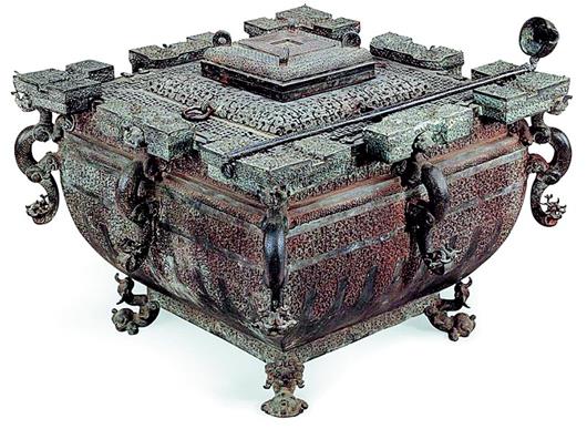 被稱為“古代冰箱”的銅鑒缶,外表極富裝飾美,集渾鑄、分鑄、焊接制作工藝于一體,缶置于鑒內(nèi),蓋好蓋,二者渾然一體。省博物館館長方勤介紹,為使二者結(jié)合穩(wěn)固,鑒底部伸出品字形三個彎鉤,尊的圈足前后留有三個穿眼,剛好容彎鉤插進,并可自動倒鉤扣住。無論從藝術(shù)角度還是從實用角度講,都已有現(xiàn)代工業(yè)設(shè)計的味道。