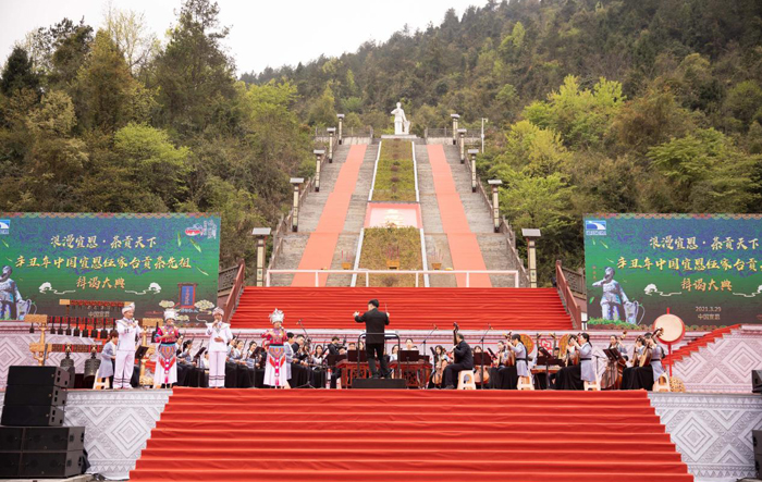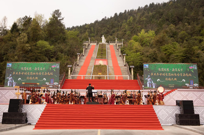 欣賞古風(fēng)雅樂,品鑒貢茶神韻。本屆大典以湖北省編鐘國樂團(tuán)的傾情演奏開場,《春到伍家臺》奏響了巴楚樂音的融合魅力與春的歡快樂章,也向世界發(fā)出了來自宣恩的邀請!爸敌脸笾愒沦猓缐咧;聚貢茶之故鄉(xiāng)兮,祭吾先祖!卑葜]儀式莊嚴(yán)隆重,展示了宣恩貢茶文化、土家風(fēng)俗。歌舞《浪漫宣恩》、茶服走秀《中國茶》、原生態(tài)演唱加民樂合奏《唱支山歌給黨聽》等節(jié)目精彩紛呈,融合土家民族歌舞、非遺特色展演等元素,同時向中國共產(chǎn)黨百年華誕獻(xiàn)禮。