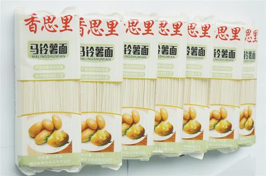 立足于掛面生產(chǎn)基礎(chǔ)和當(dāng)?shù)伛R鈴薯資源,研發(fā)出馬鈴薯掛面產(chǎn)品和馬鈴薯養(yǎng)生粥!叭芘啤瘪R鈴薯面條獲第12屆武漢農(nóng)博會(huì)“金獎(jiǎng)農(nóng)產(chǎn)品”。目前該公司馬鈴薯產(chǎn)品已銷往全國(guó)。
