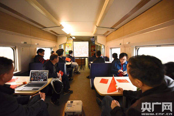 央廣網(wǎng)北京10月18日消息(記者張毛清 通訊員易娜)10月18日,中國共產(chǎn)黨第十九次全國代表大會開幕,為了讓旅途中的旅客能夠看到開幕式直播,武漢客運段在各次列車上準備了筆記本電腦、投影儀等電子設(shè)備,與旅客在列車上一起收看十九大開幕會直播。