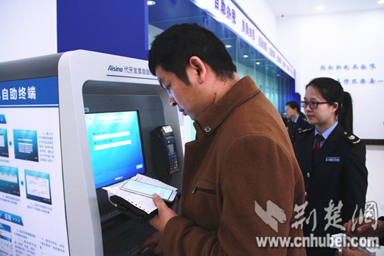 “荊州市辦稅服務廳是全省首創(chuàng),此外我們還有一個首創(chuàng),我們將原荊州區(qū)地稅辦稅服務廳整體改造成自助辦稅服務廳,這個服務廳也是湖北省首個集智能辦稅、網(wǎng)上辦稅、金融服務為一體的自助辦稅大廳!鼻G州市地稅局納稅服務局局長胡緒振高興地告訴記者。