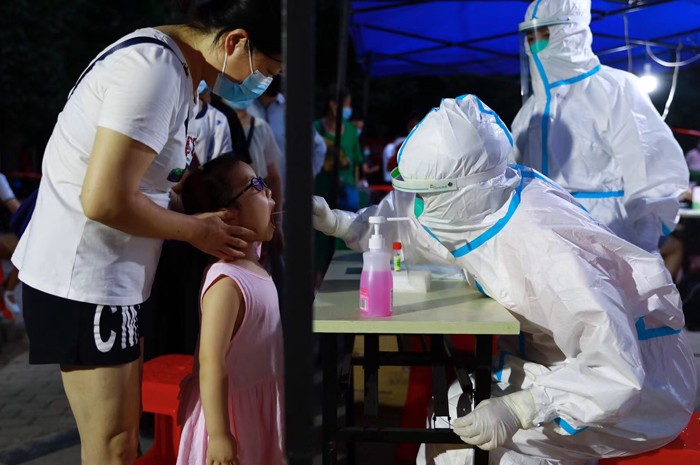 央廣網(wǎng)武漢8月5日消息(記者張卓 通訊員王琛 高琛琛 薛源)3日凌晨至5日,武漢兒童醫(yī)院接到馳援采集核酸的通知,成立核酸采樣應(yīng)急醫(yī)療隊,196名醫(yī)護人員馬不停蹄分別趕往19個核酸采樣點。在現(xiàn)場,準備物資、備條碼、登記、采樣、維護秩序、整理數(shù)據(jù)……為提高采樣效率,與時間賽跑,各個崗位的工作人員分工明確,有條不紊地開展核酸采樣工作。