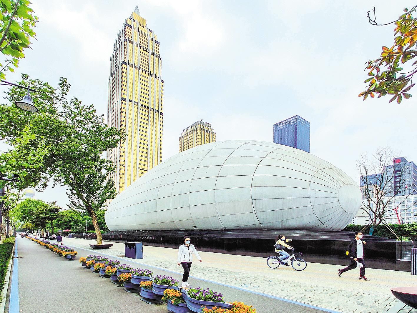 4月25日,在武漢市漢口沿江大道與五福路交會處,一座長約30米,高約10米的蛋形建筑格外引人注目。這顆“巨蛋”呈水泥灰色,在“巨蛋”西側(cè),有兩部電動扶梯通往裝修精美的地下空間。據(jù)了解,“巨蛋”是名為“長江之石”的景觀雕塑,其地下空間,則是“長江之門藝術(shù)展示中心”。未來這里將以自然元素為載體,用藝術(shù)的方式展示長江自然景觀。 (湖北日報全媒記者 梅濤 攝)