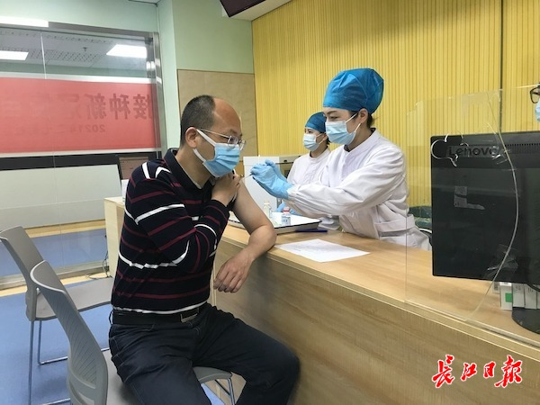 工作人員正在為居民接種疫苗。 長江日?qǐng)?bào)見習(xí)記者張思敏攝