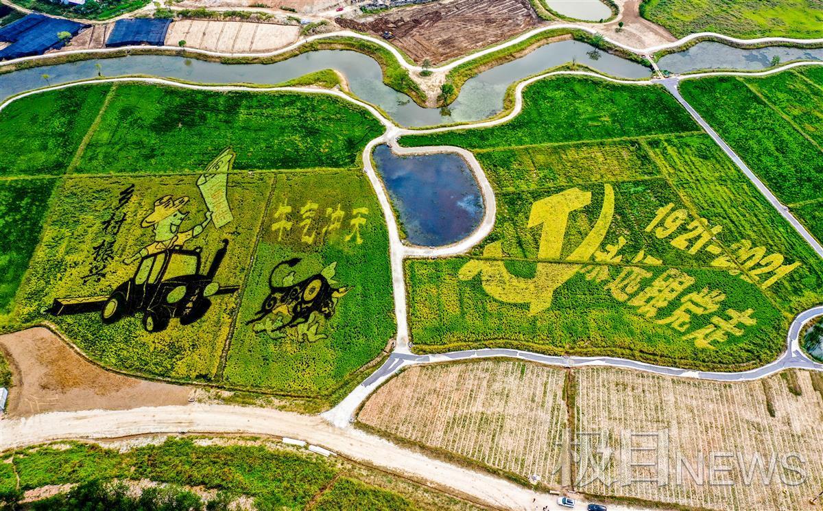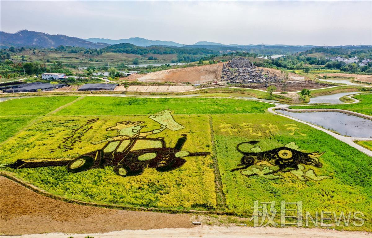 走進(jìn)正在建設(shè)中的木蘭棲塘現(xiàn)代農(nóng)業(yè)產(chǎn)業(yè)園項目,稻田中的不統(tǒng)一顏色引起了記者的注意,遠(yuǎn)遠(yuǎn)望去,稻田中有綠色、黃色、黑色等稻谷,而站在高處,一幅幅畫作出現(xiàn)在記者的眼前,以“鄉(xiāng)村振興”“永遠(yuǎn)跟黨走”為主題的稻田畫用生動的形式表現(xiàn)出來,40畝的稻田里也是碩果累累,載滿了收獲的喜悅。